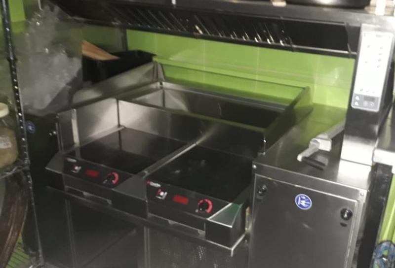 This cooking station is with Built in Chiller and Induction Plate included.