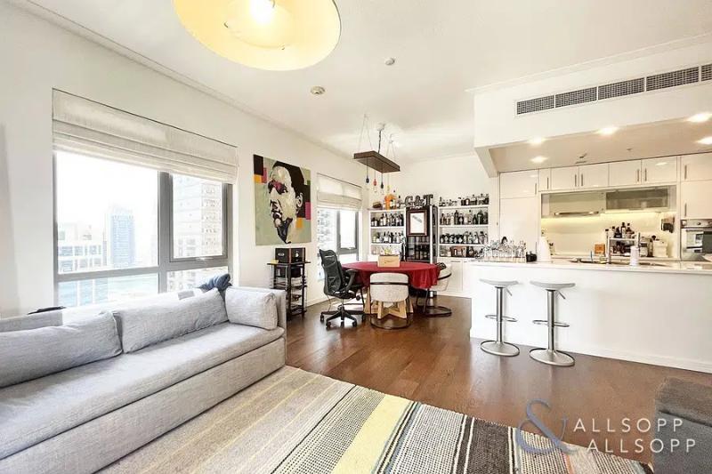 The apartment comprises of an open living-kitchen area, guest bathroom and en-suite, double bedroom with built-in wardrobe space and balcony with full Burj view.