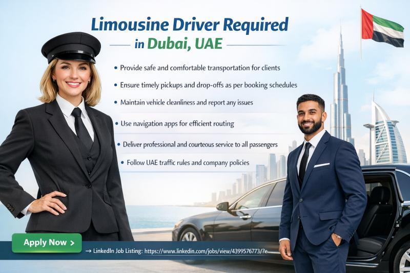 We are seeking a professional and responsible Limousine Driver holding a valid UAE / GCC driving license to join our growing team in Dubai. The candidate will be responsible for delivering safe, reliable, and high-quality transportation services while maintaining excellent customer experience.