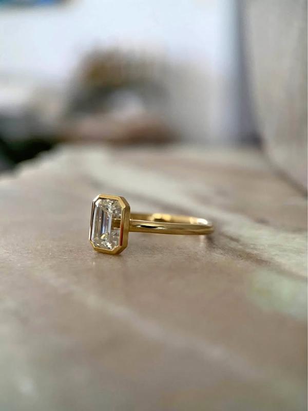 Featuring Clovari’s Gold Plated Bezel Octagonal Moissanite Ring in Sterling Silver.