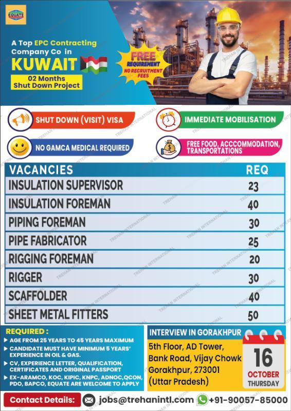 [11:30 AM, 10/13/2025] Trehan International: HIRING NOW – KUWAIT SHUTDOWN PROJECT (2 Months)