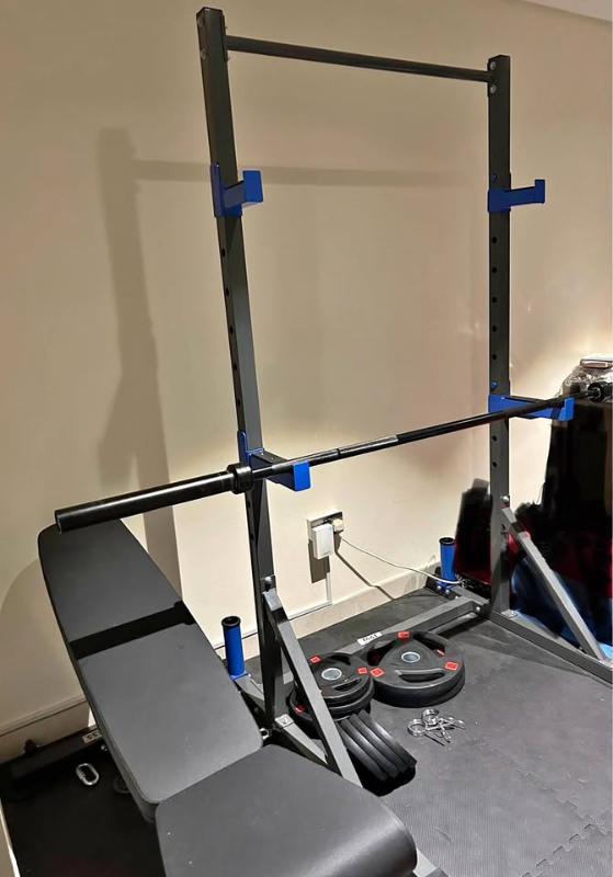 Bench, squat bar, and weights bought and used once, in pristine condition.