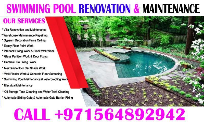 Dear Sir Madam Good day, we are Specially Home- Park Hotel Apartment Swimming Pool Maintenance Services is one of the fastest growing companies in Ajman Dubai Sharjah all UAE providing home Maintenance services in United Arab Emirates ABM Building Maintenance Services , is a firm specialized in all types of Interior & Exterior Decoration Painting work- Electrical Work-Plumbing Work-Warehouse Epoxy Floor Paint -Floor waterproofing works - Gypsum carpenter & False Ceiling Work- we provide facility Maintenance services in different business sectors like Commercial & Residential buildings -Apartments- Hospitals-Hotels- Labor Camps-Shopping Malls etc. call: +971564892942
