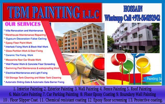 Dear Sir Madam Good day, we are Specially Home-office-Maintenance Services is one of the fastest growing companies in Ajman Dubai Sharjah all UAE providing home Maintenance services in United Arab Emirates ABM Building Maintenance Services , is a firm specialized in all types of Interior & Exterior Decoration Painting work- Electrical Work-Plumbing Work-Warehouse Epoxy Floor Paint -Floor waterproofing works - Gypsum carpenter & False Ceiling Work- we provide facility Maintenance services in different business sectors like Commercial & Residential buildings -Apartments- Hospitals-Hotels- Labor Camps-Shopping Malls etc. call: +971564892942