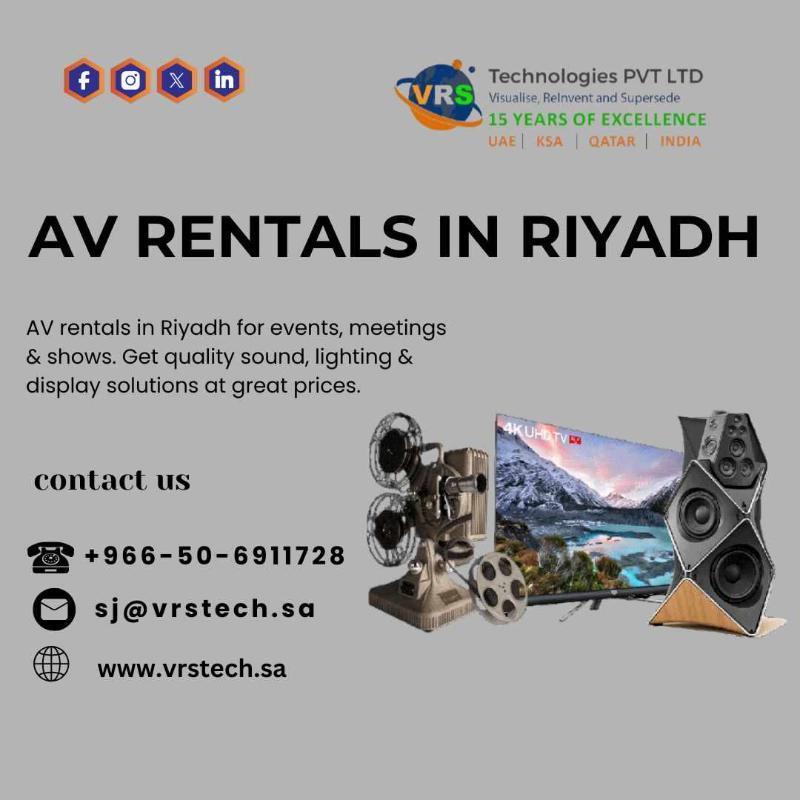 Discover top quality AV Rentals in Riyadh for events, conferences, and meetings. Get the latest audio visual equipment with expert support. Choose VRS Technologies PVT LTD for reliable service. Call +966-50-6911728 today.
